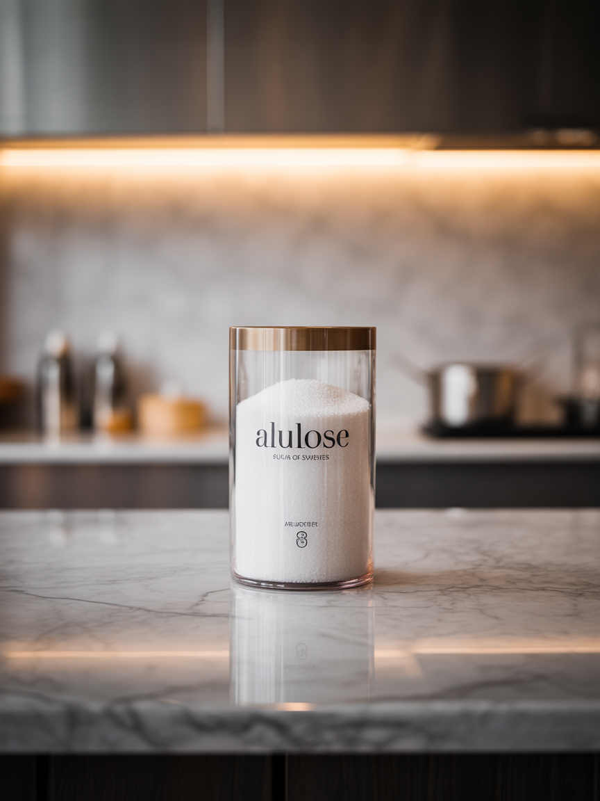 Apesar de ter gosto e estrutura semelhante ao açúcar, a alulose não é metabolizada pelo corpo — ou seja, passa pelo sistema digestivo sem ser absorvida como glicose, fornecendo praticamente zero calorias.