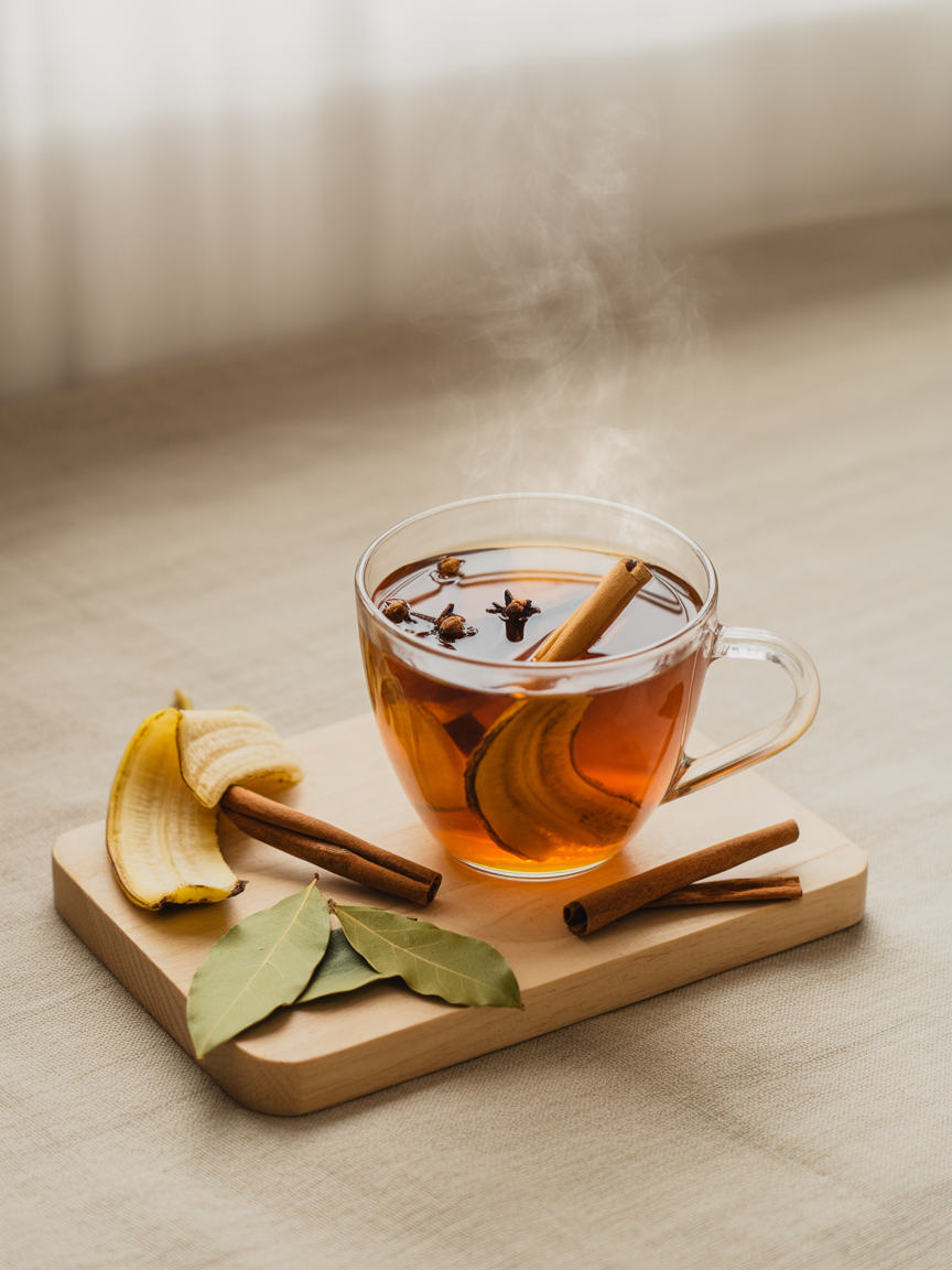 Chá de Casca de Banana com Cravo, Canela e Louro