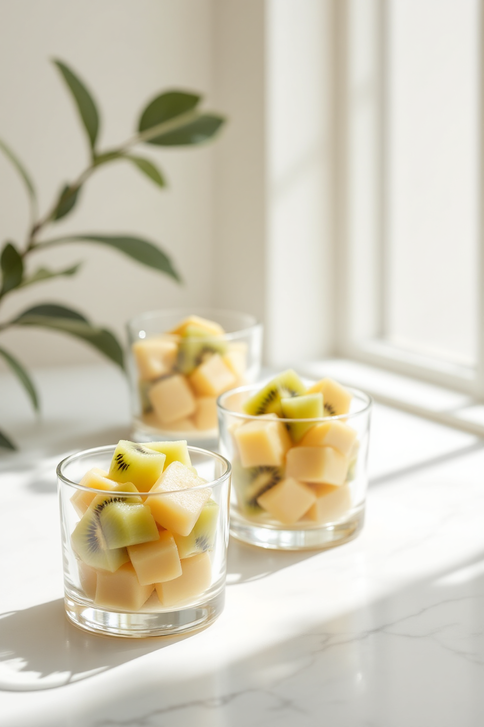1 xícara de suco de kiwi com hortelã (2 kiwis maduros + 3 folhas de hortelã + 50 ml de água)
