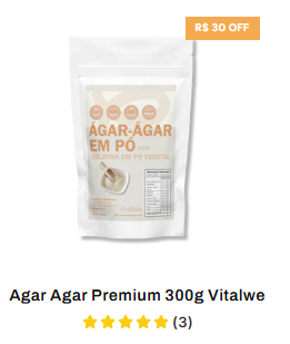 Agar Agar – Fibras naturais, que ajudam na saúde intestinal e estimulam a produção de colágeno em seu corpo.