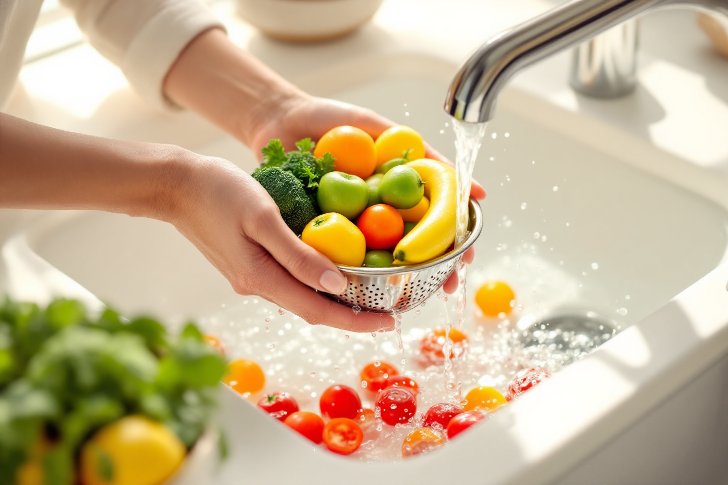 Lave bem com água corrente para tirar sujeiras visíveis.