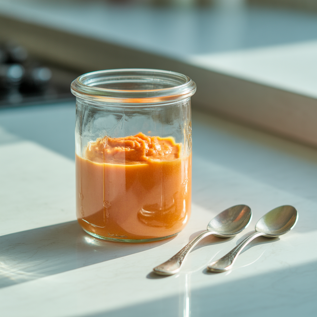 Esta pasta cremosa é muito mais que uma sobremesa – é um verdadeiro elixir funcional para o corpo feminino. Feita com mamão maduro, especiarias aromáticas e superfoods cuidadosamente selecionados, ela oferece uma experiência sensorial única.