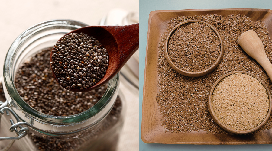 Coloque a chia e a linhaça em um potinho.