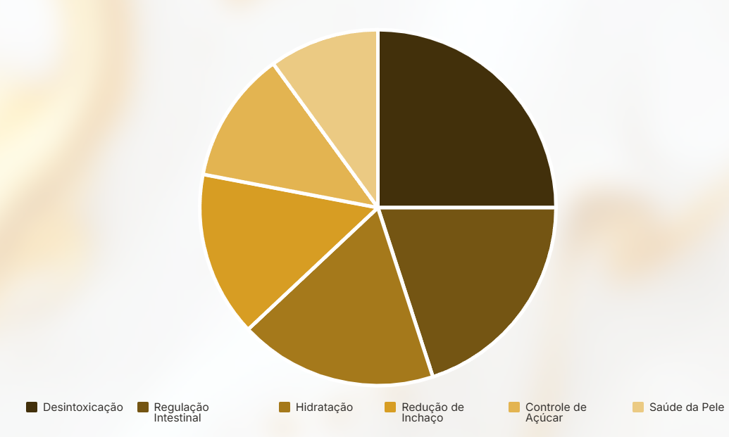 O gráfico mostra a distribuição dos principais benefícios do suco detox, destacando seu potencial para desintoxicação e regulação intestinal.