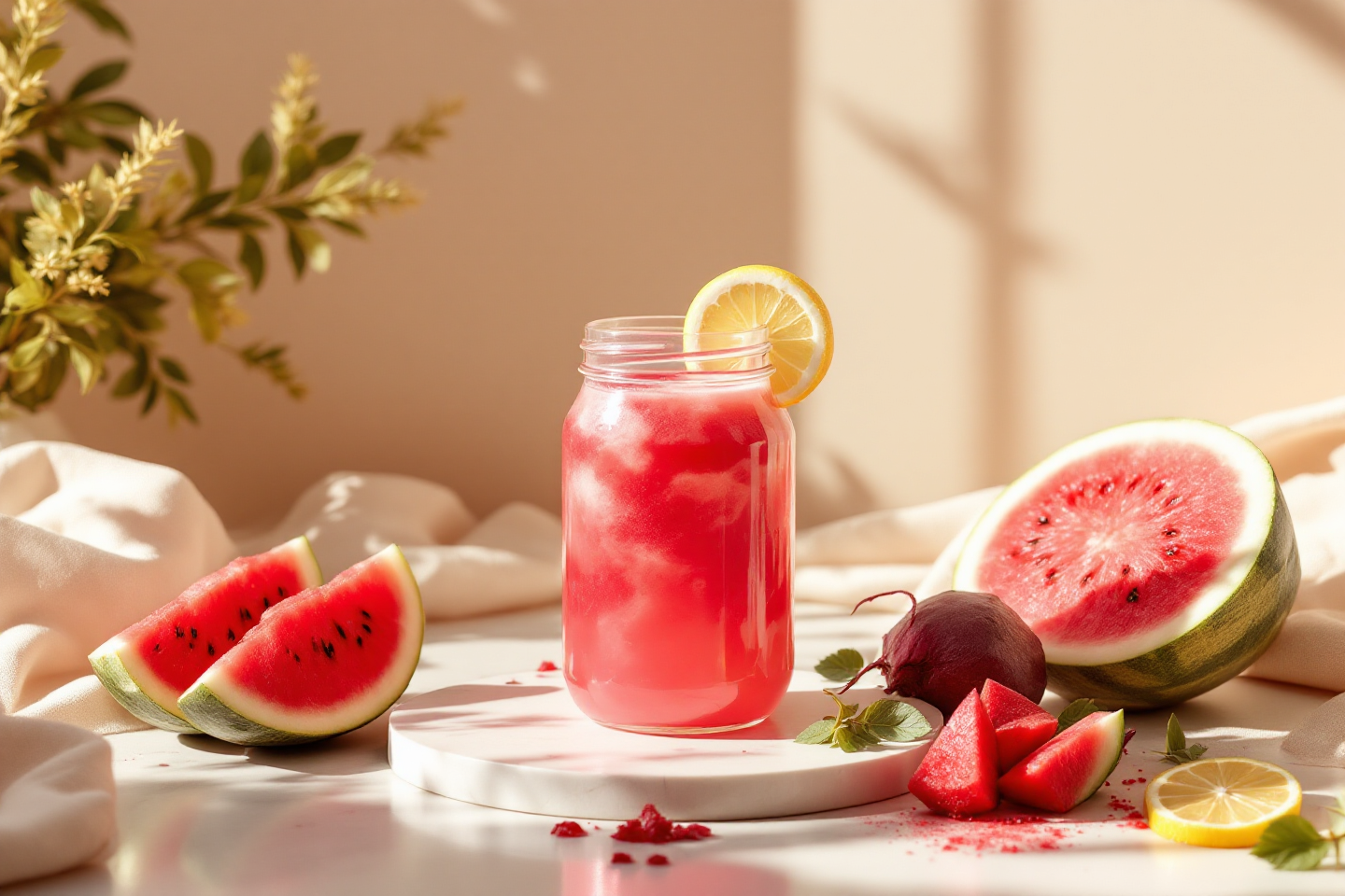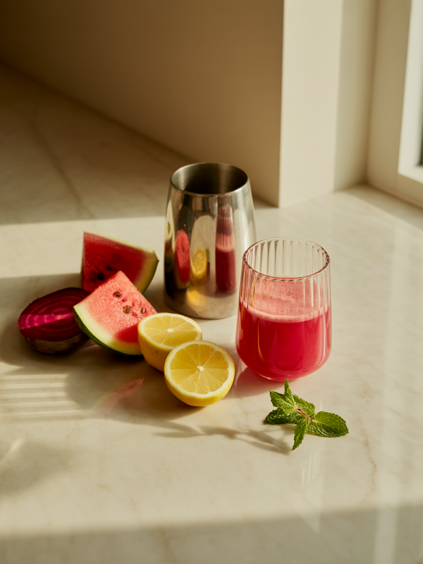Suco Funcional Detox com Melancia, Beterraba, Limão e Alulose